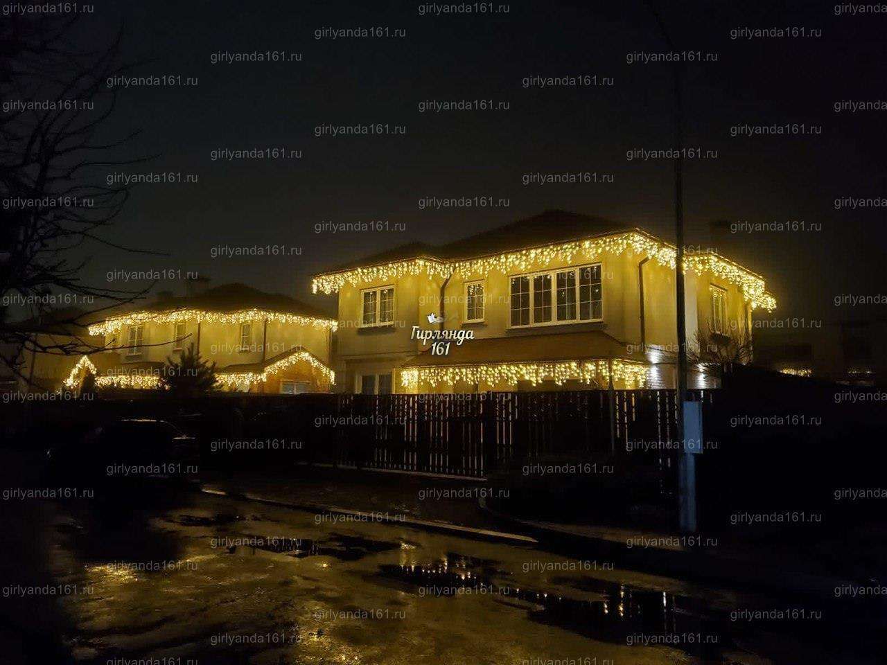 - В проекте использовано сочетание декоративной подсветки светодиодной бахромы по контуру фасада.