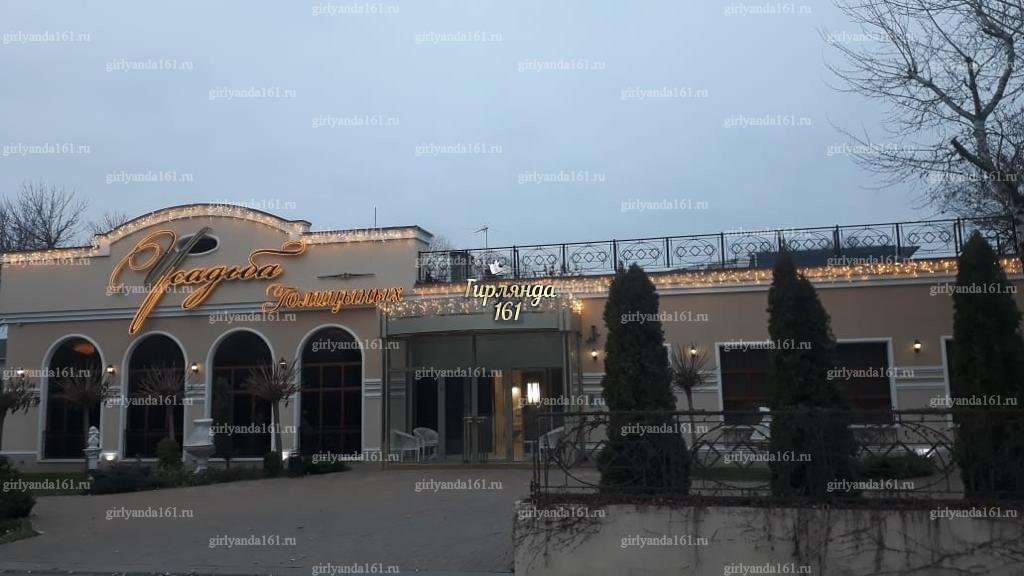 - Задача: оформление светодиодными гирляндами входной группы ресторана.