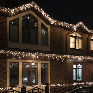 - Задача: оформление светодиодными гирляндами фасада и колонн частного дома.