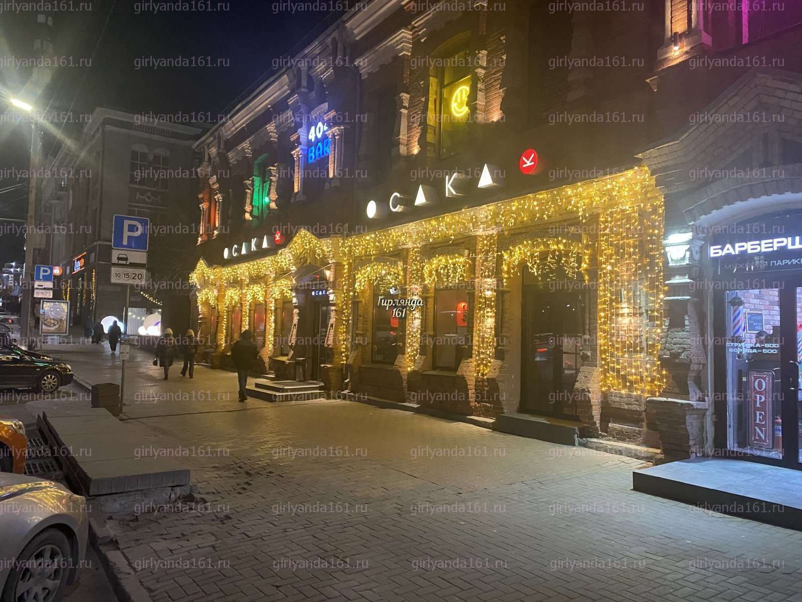 - Задача: оформление светодиодными гирляндами входной группы ресторана.