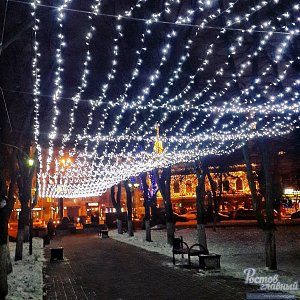 - С двух сторон аллеи сквера расположены деревья со светящимися диодами белого цвета. Данная иллюминация служит отличной вечерней фотозоной.