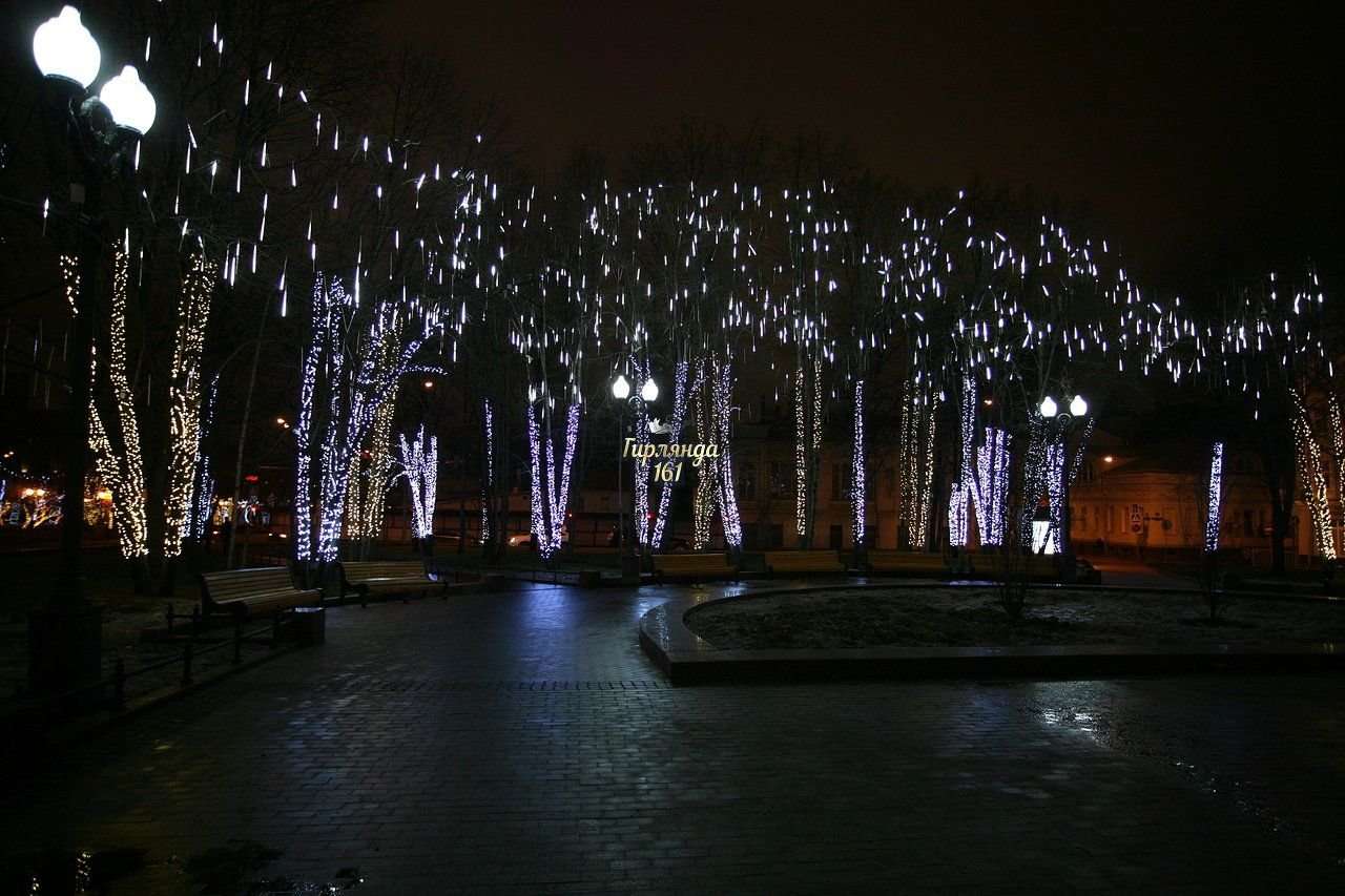- Красивые огоньки создают в темное время суток неповторимую сказочную атмосферу, которая так приятно радует глаз. Красиво декорированные гирляндами деревья можно зажигать не только в дни новогодних, но и любых других праздников, а также в самый обычный день.