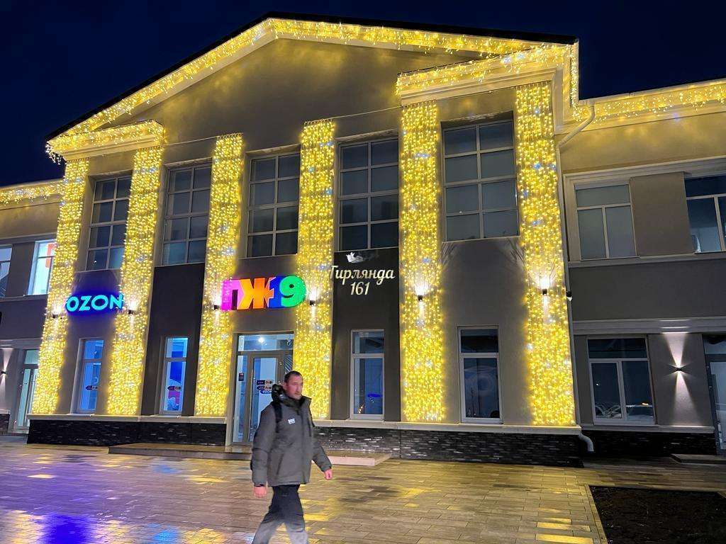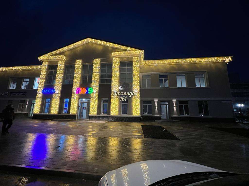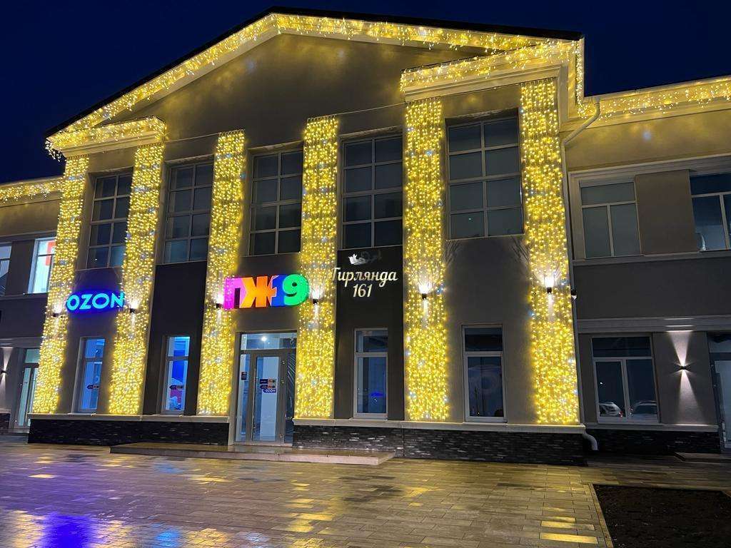 - Задача: оформление светодиодными гирляндами фасада здания.
