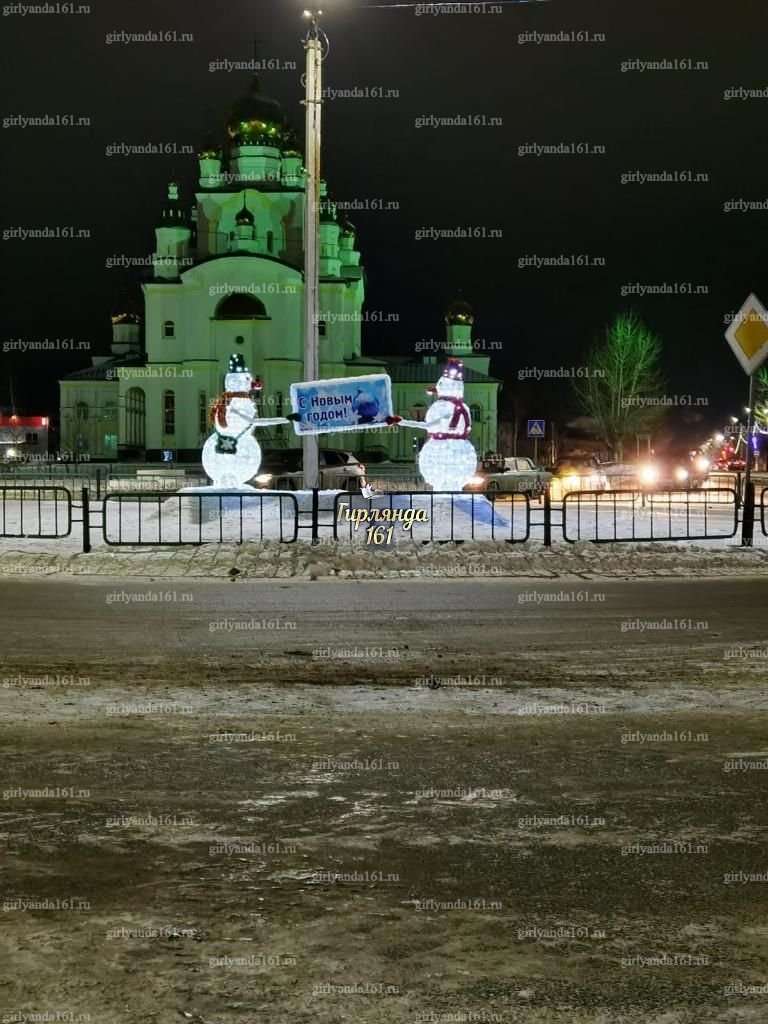 - Красивые огоньки создают в темное время суток неповторимую сказочную атмосферу, которая так приятно радует глаз. Световые снеговики являются великолепной фотозоной для жителей.