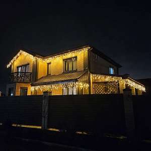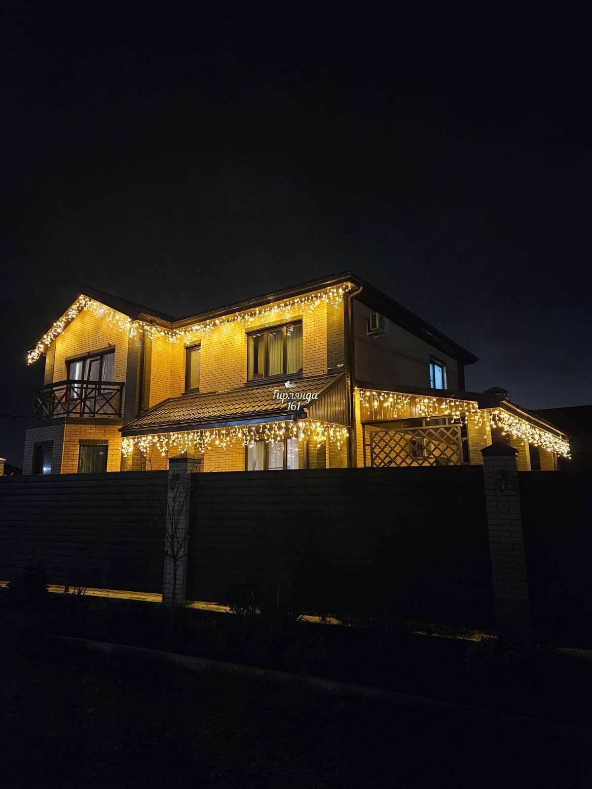 - В проекте использовано сочетание декоративной подсветки светодиодной бахромы по контуру фасада.