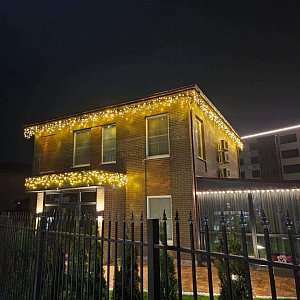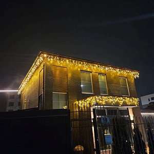 В проекте использовано сочетание декоративной подсветки бахромой по контуру .