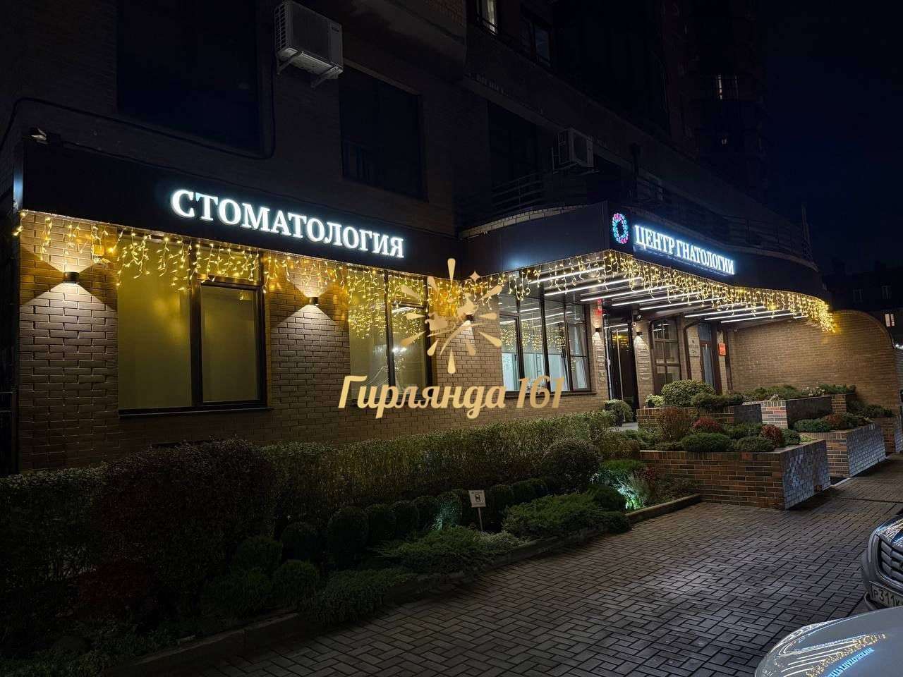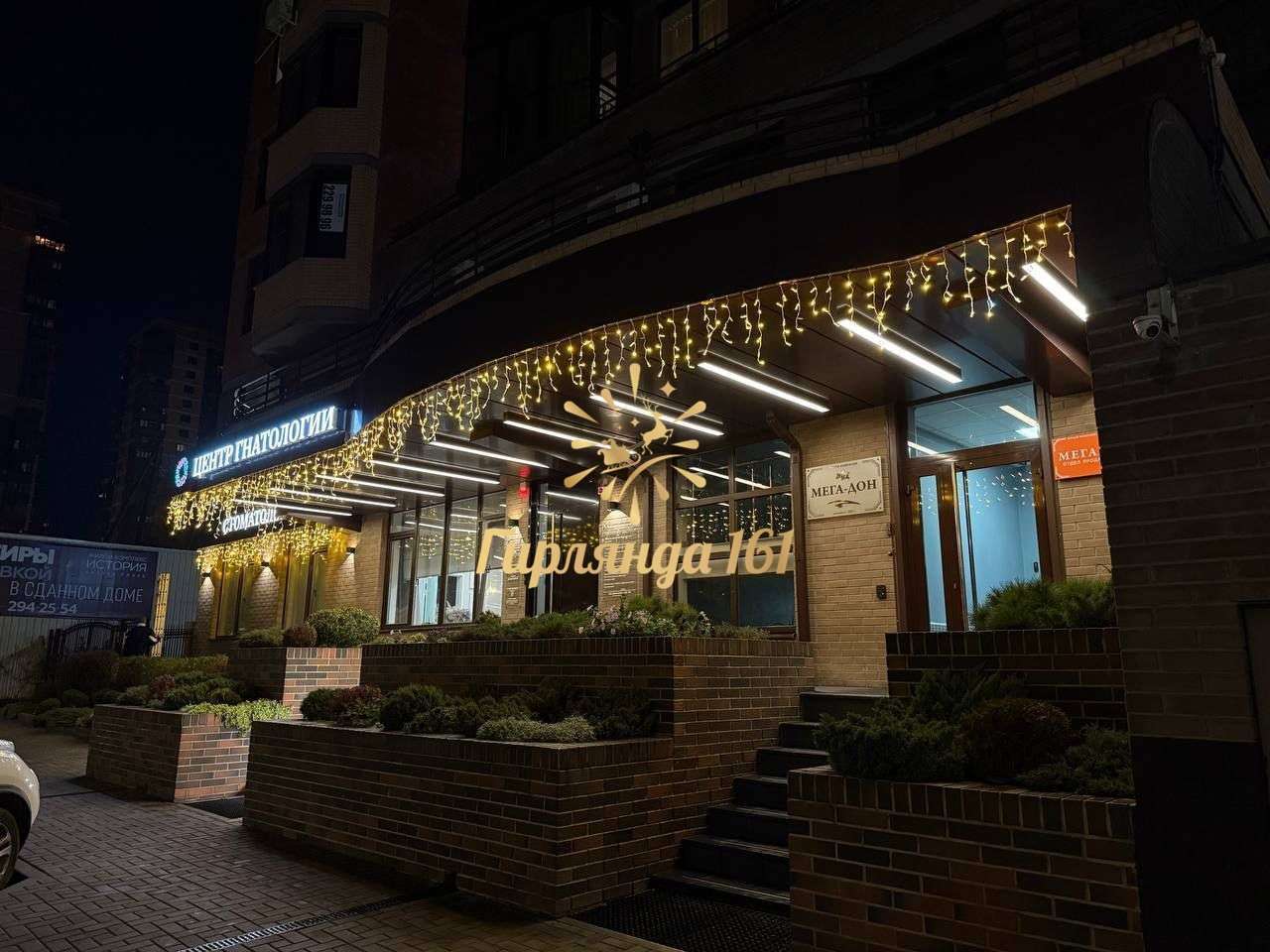 Украшение "Центра гнатологии" гирляндами в Ростове-на-Дону