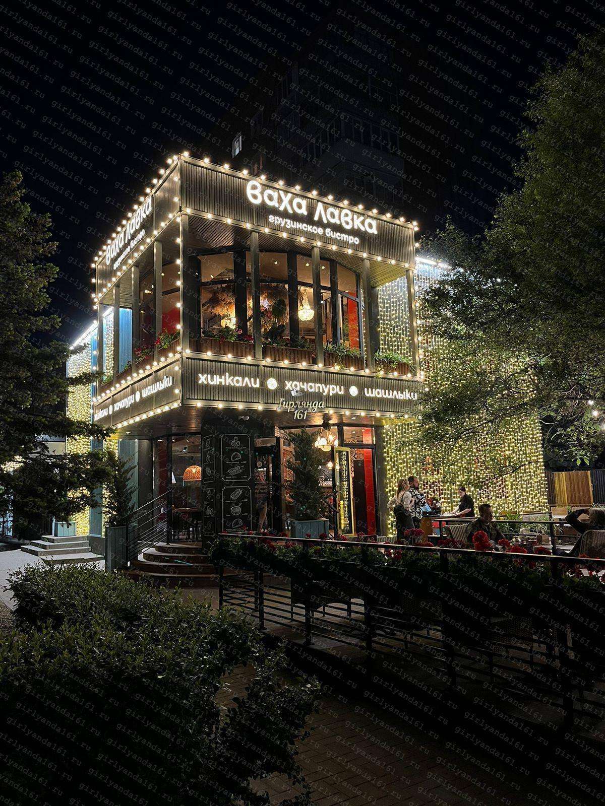 - Задача: оформление светодиодными гирляндами фасада здания.