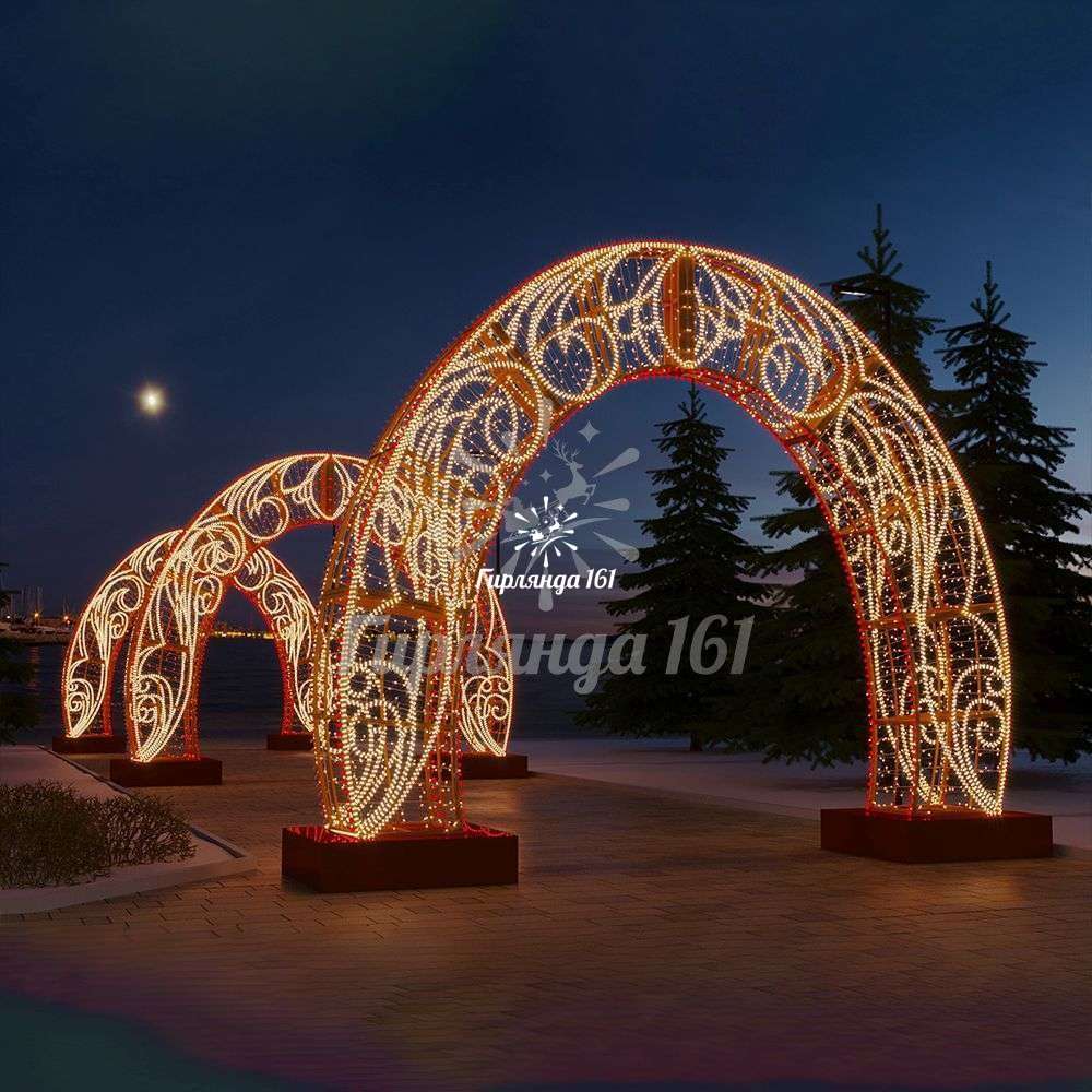 Конструкция разработана для круглогодичного использования. Профессиональное световое оборудование обеспечивает стабильную работу при любых погодных условиях. Арка не требует сложного обслуживания и готова к использованию после монтажа.