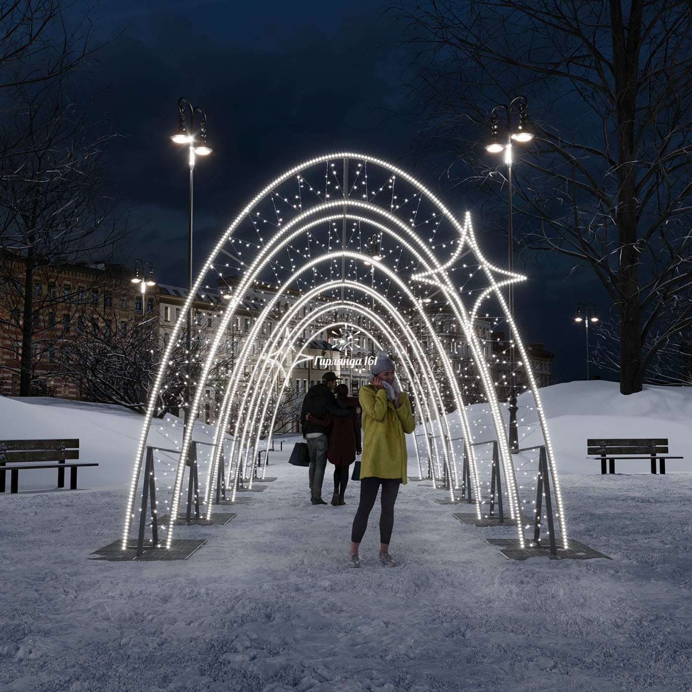 Световая арка-тоннель «Верона» станет центральным элементом праздничного оформления, создавая незабываемую атмосферу торжества и привлекая внимание посетителей.