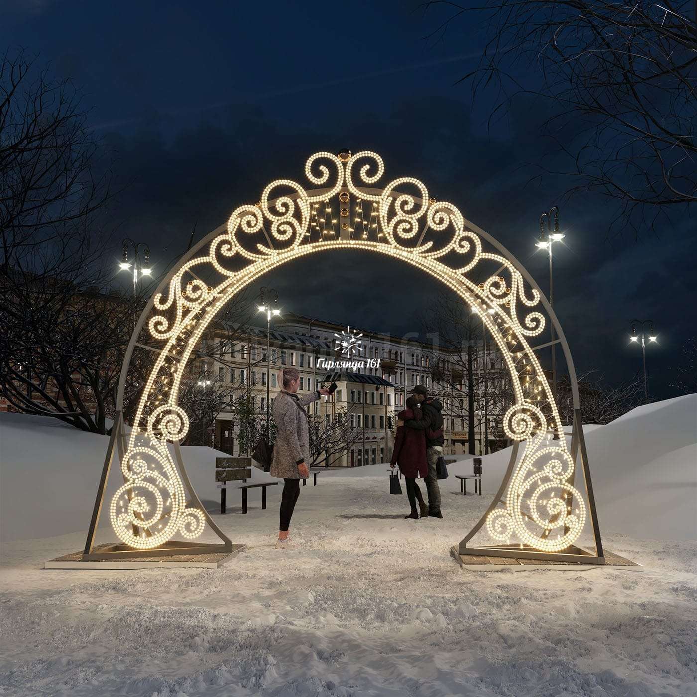 Световая арка «Тулуза» — стильная архитектурная конструкция для создания впечатляющего светового оформления городских пространств и праздничных мероприятий.