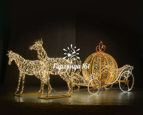 Световая композиция «Карета принцессы и 2 коня» — это впечатляющий арт-объект, который превратит любое пространство в настоящую сказку. Благодаря современным технологиям освещения, фигура создает неповторимую атмосферу волшебства и праздника.