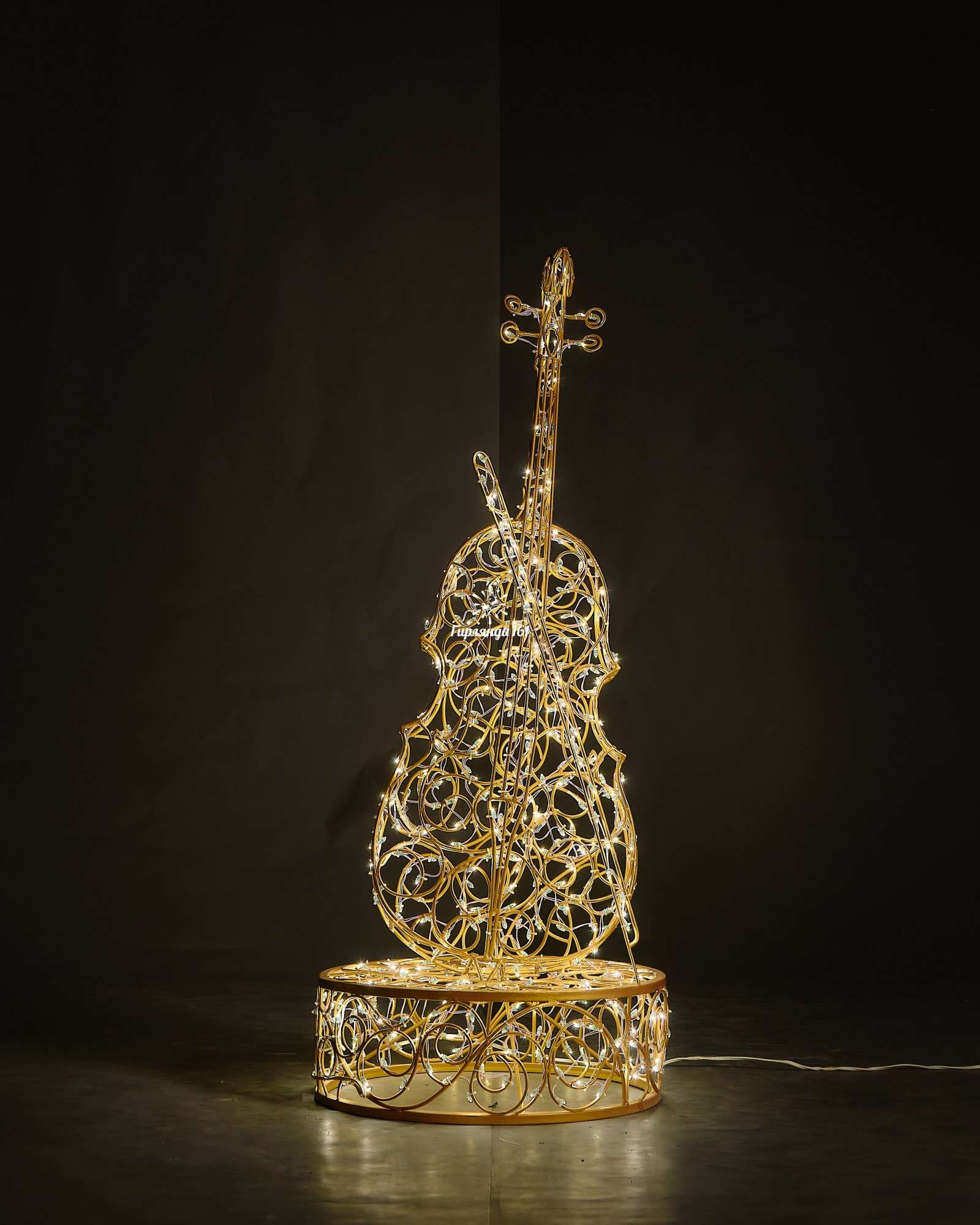 Грандиозный декоративный элемент — впечатляющая световая фигура в форме контрабаса, которая станет центральным элементом праздничного оформления и подарит всем окружающим ощущение настоящего музыкального величия.