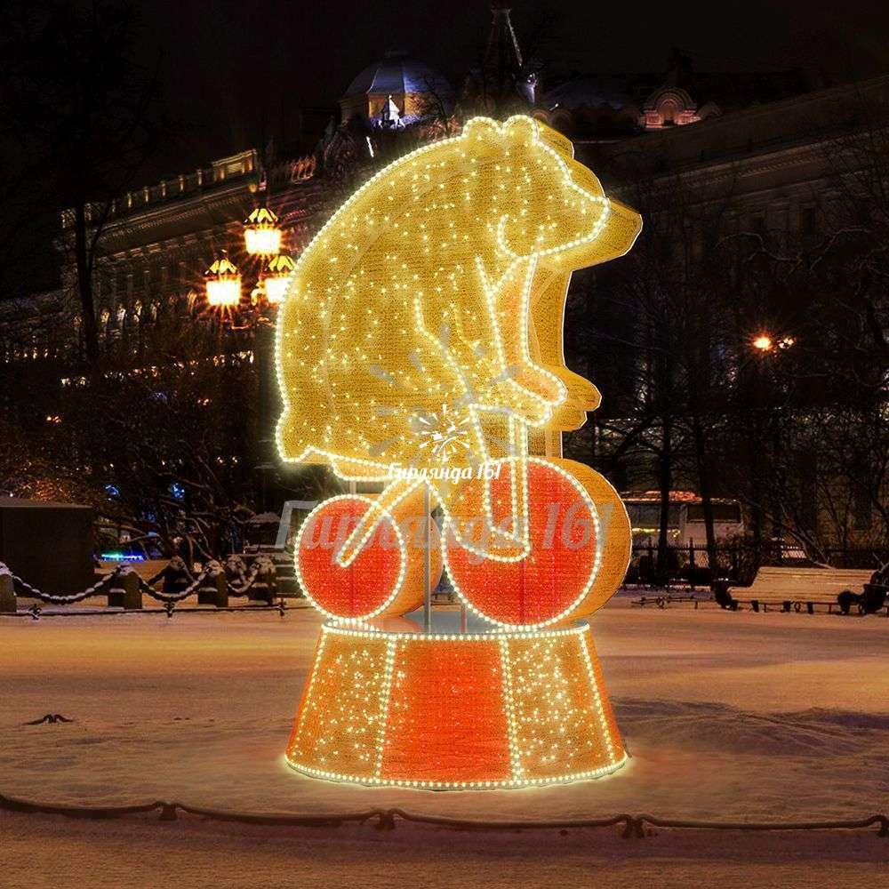 Представляем вам уникальную световую фигуру «Медведь на велосипеде» — настоящий хит среди световых инсталляций!