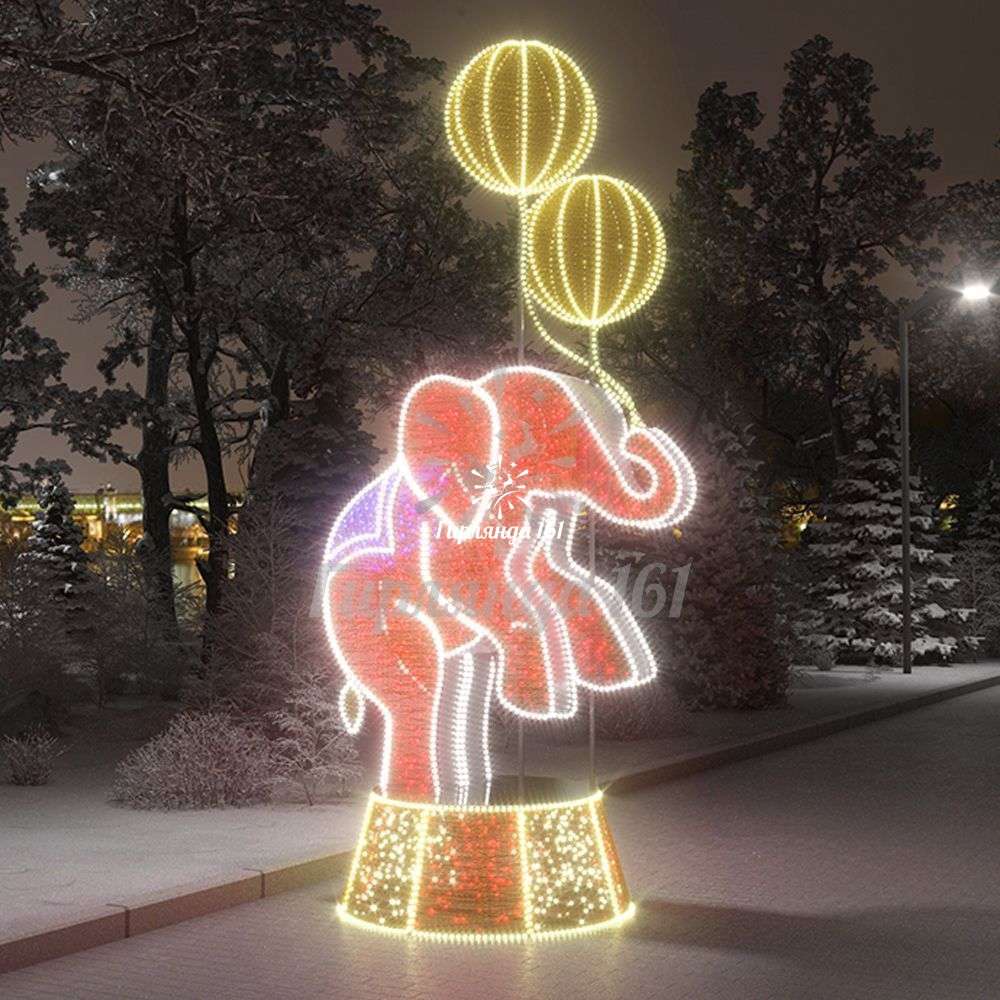 Уникальная световая инсталляция «Слон с шарами» — это не просто украшение, а настоящий центр притяжения для всех возрастов!