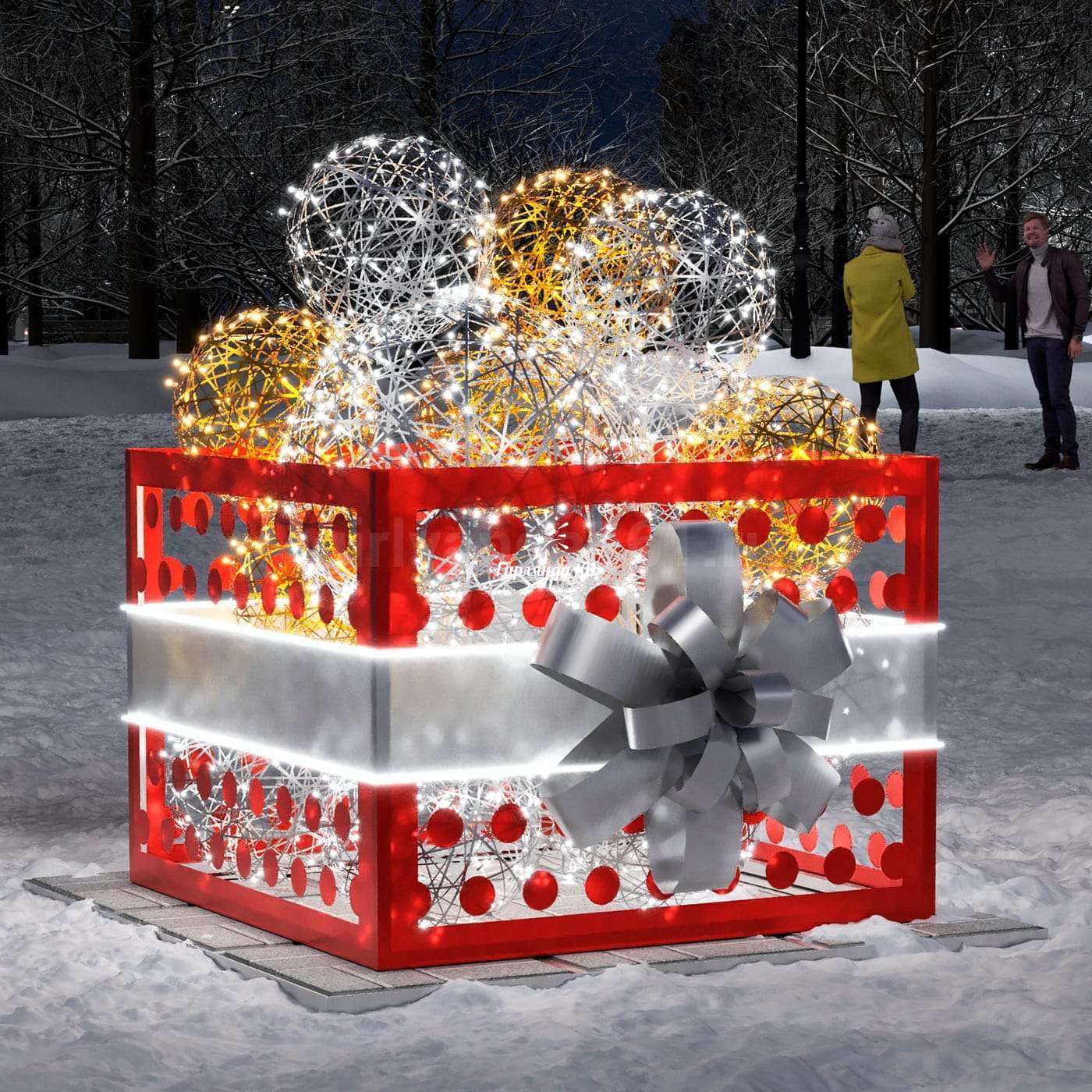 Световая фотозона «Ёлочные игрушки» — очаровательная новогодняя композиция, создающая волшебную атмосферу праздника. Конструкция включает объёмные светящиеся ёлочные игрушки разных форм и размеров, идеально подходит для создания эффектных праздничных фото.