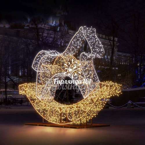 Световая фигура «Лошадка-качалка» — это впечатляющий элемент декора, который станет настоящим украшением любой территории. Выполненная в виде классической детской качалки, эта объемная композиция привлекает внимание своим изяществом и эффектной подсветкой.