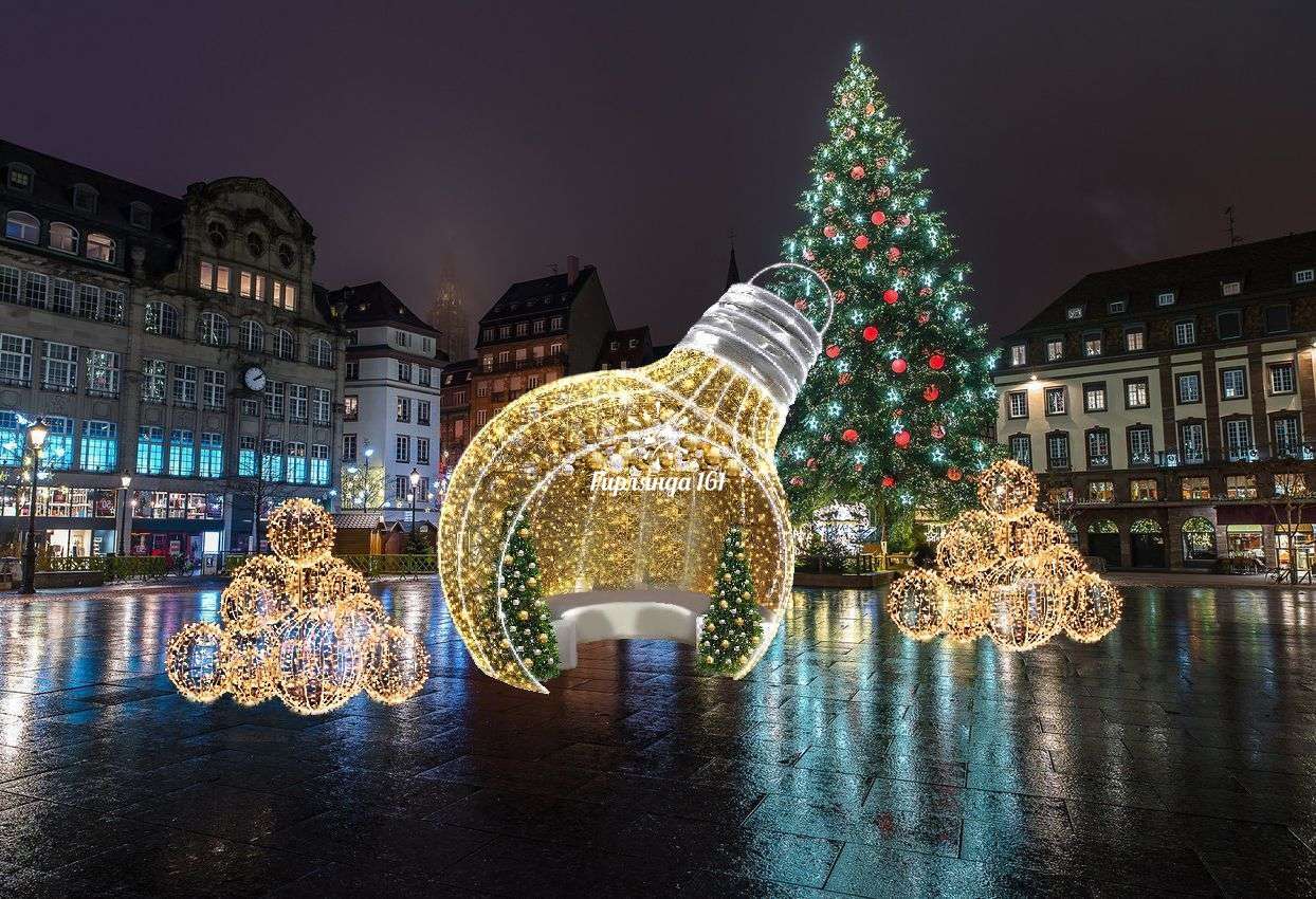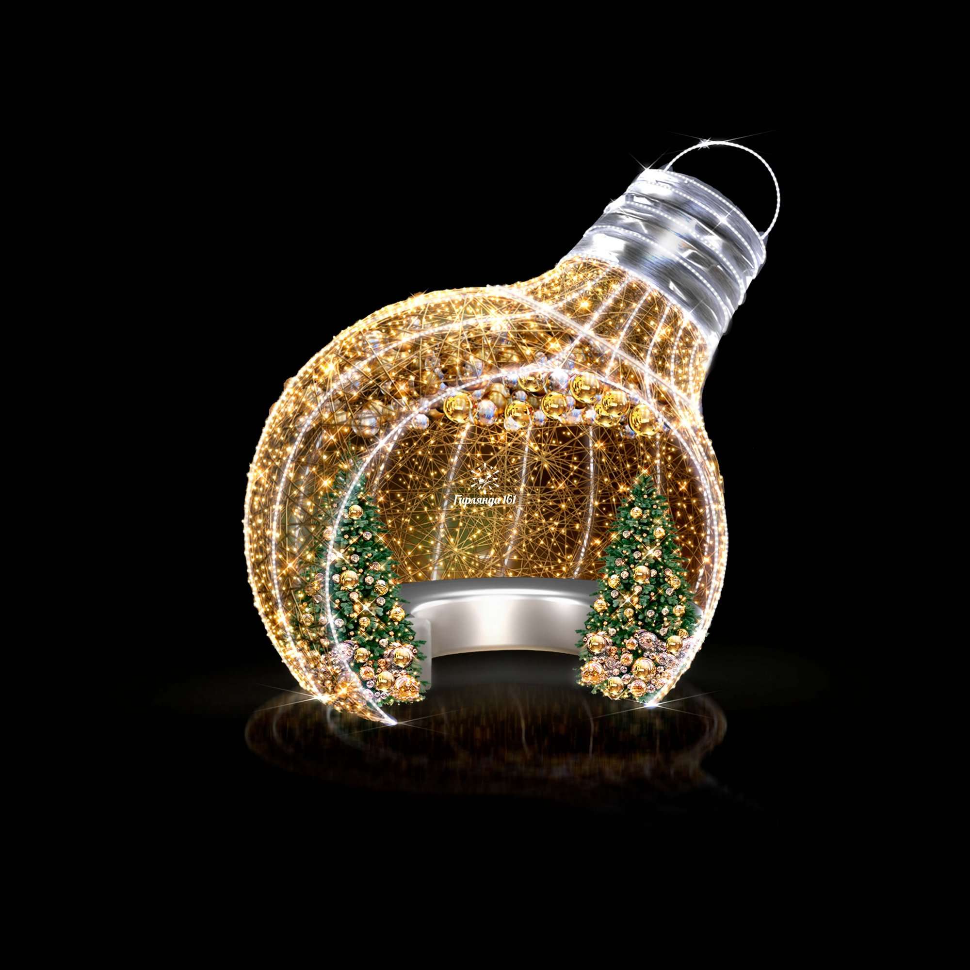 Масштабная световая инсталляция в виде гигантской новогодней лампочки станет центральным элементом праздничного оформления любой территории. Конструкция высотой 3,4 метра привлекает внимание и создает волшебную атмосферу праздника.