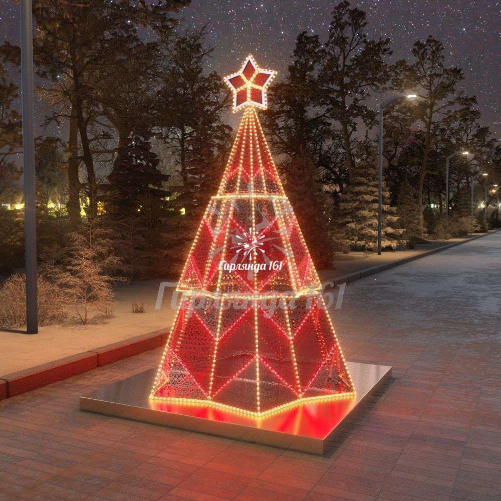 Светодиодная ель «Звездная» — это стильное и яркое украшение для вашего дома или офиса. Она выполнена в виде геометрической конструкции с использованием светодиодов, которые создают эффектный световой узор. На вершине ели расположена большая звезда, которая добавляет праздничного настроения.
