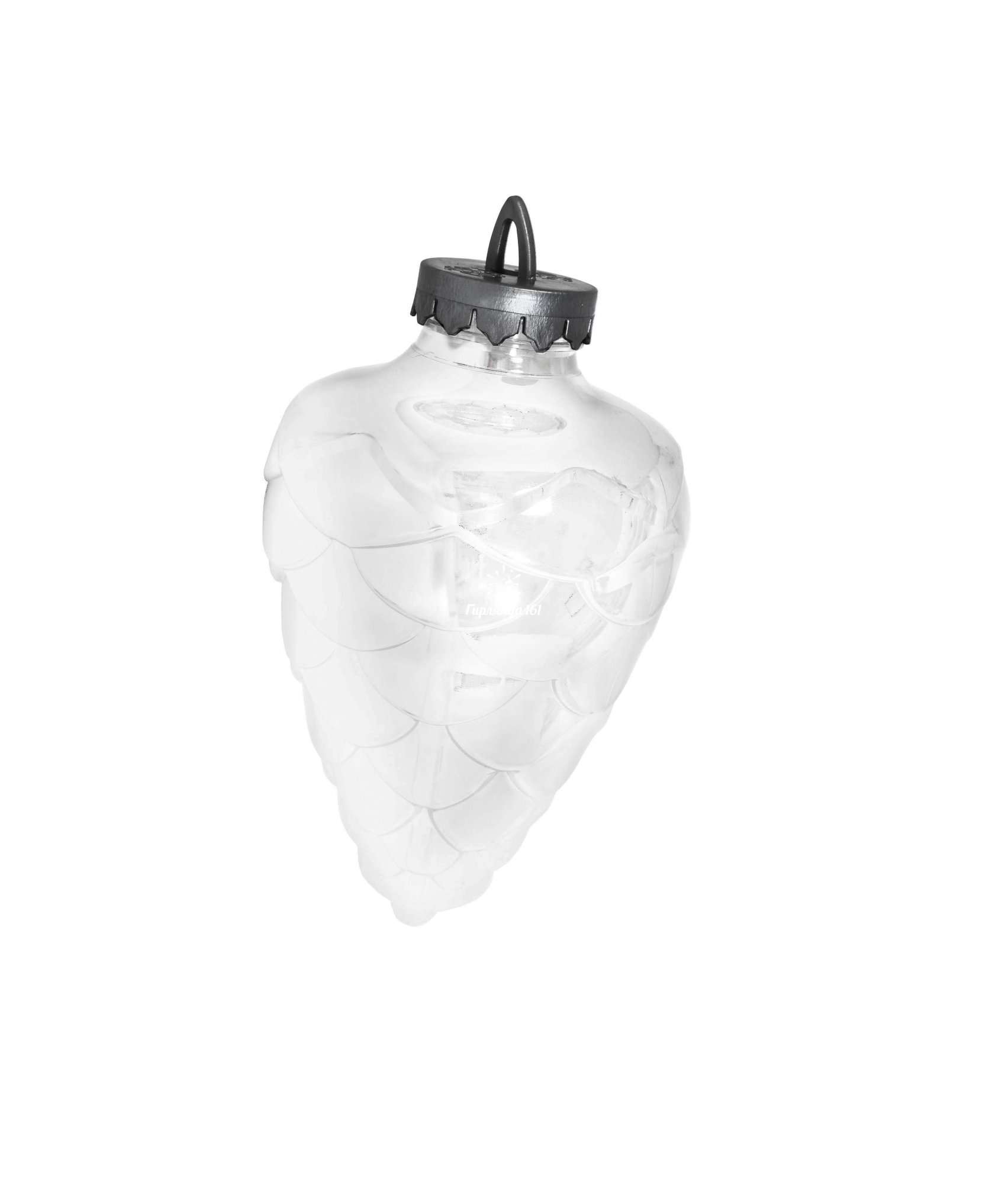 Игрушка выполнена из прочного пластика с детализированной фактурой, реалистично передающей слои шишки. Покрытие может быть глянцевое, матовым или слегка блестящим — с лёгким напылением создающим праздничное сияние.