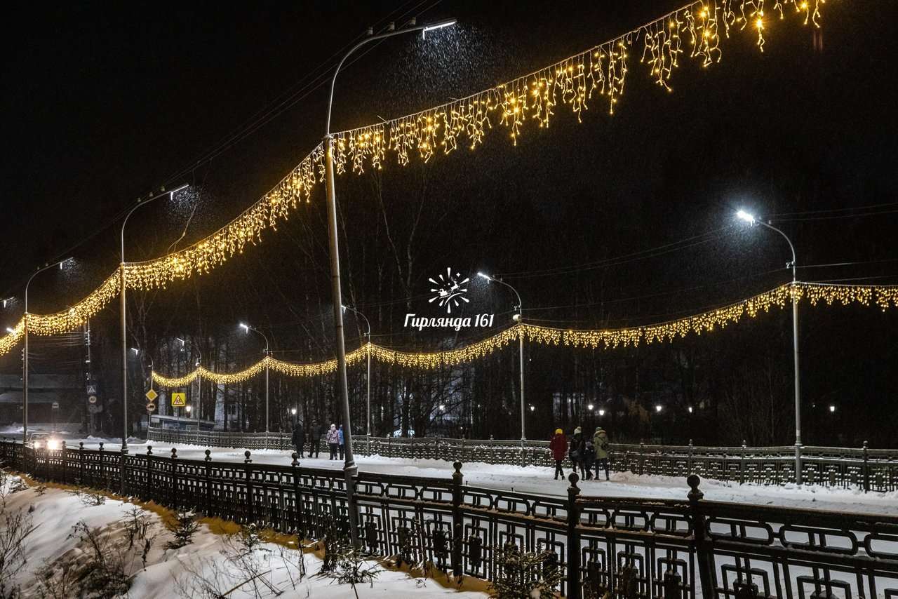 Изысканное световое решение — элегантная перетяжка с эффектной бахромой, которая станет ярким акцентом в праздничном оформлении любого пространства.