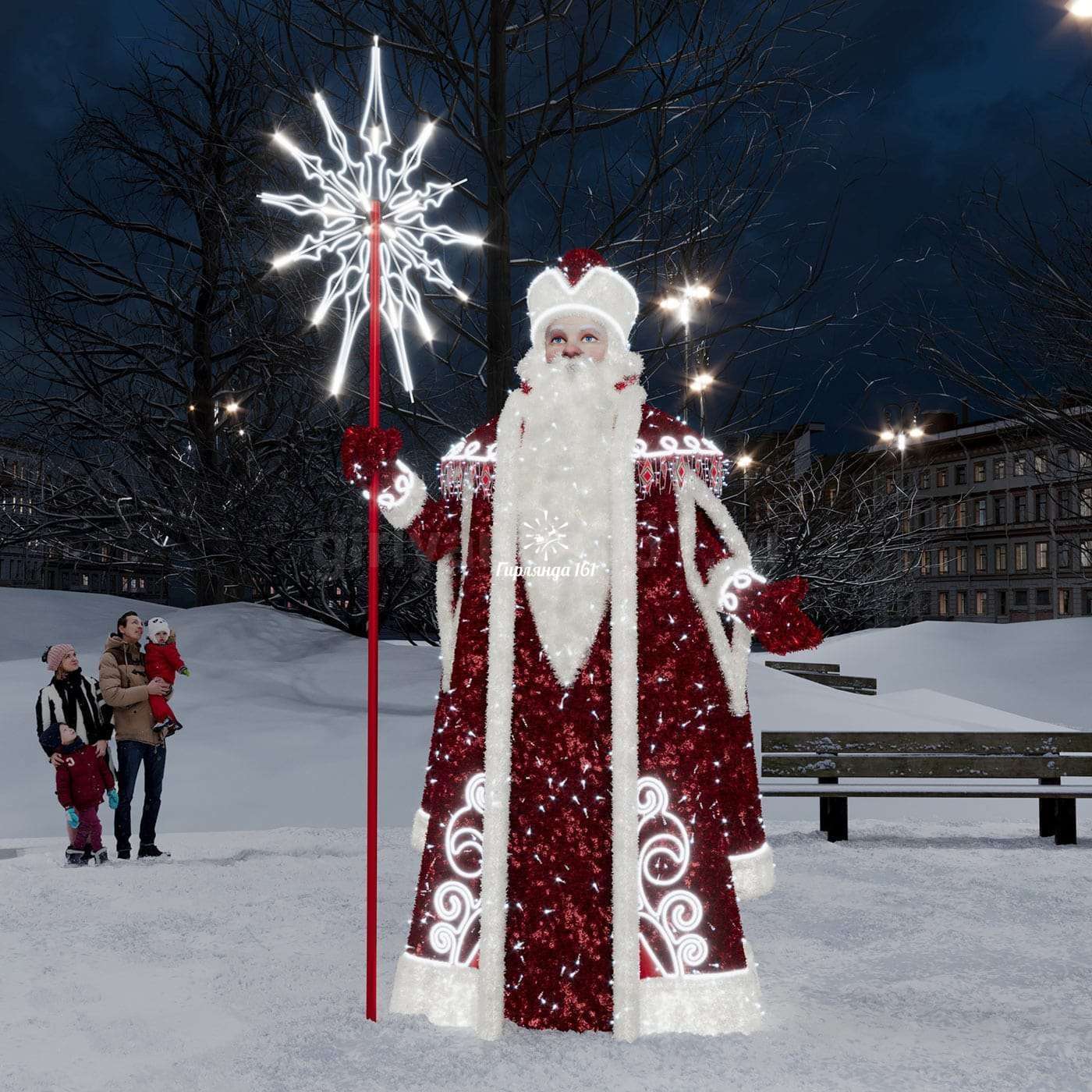 Световая фигура «Дед Мороз в красной шубе» 4,15 м — величественный символ Нового года