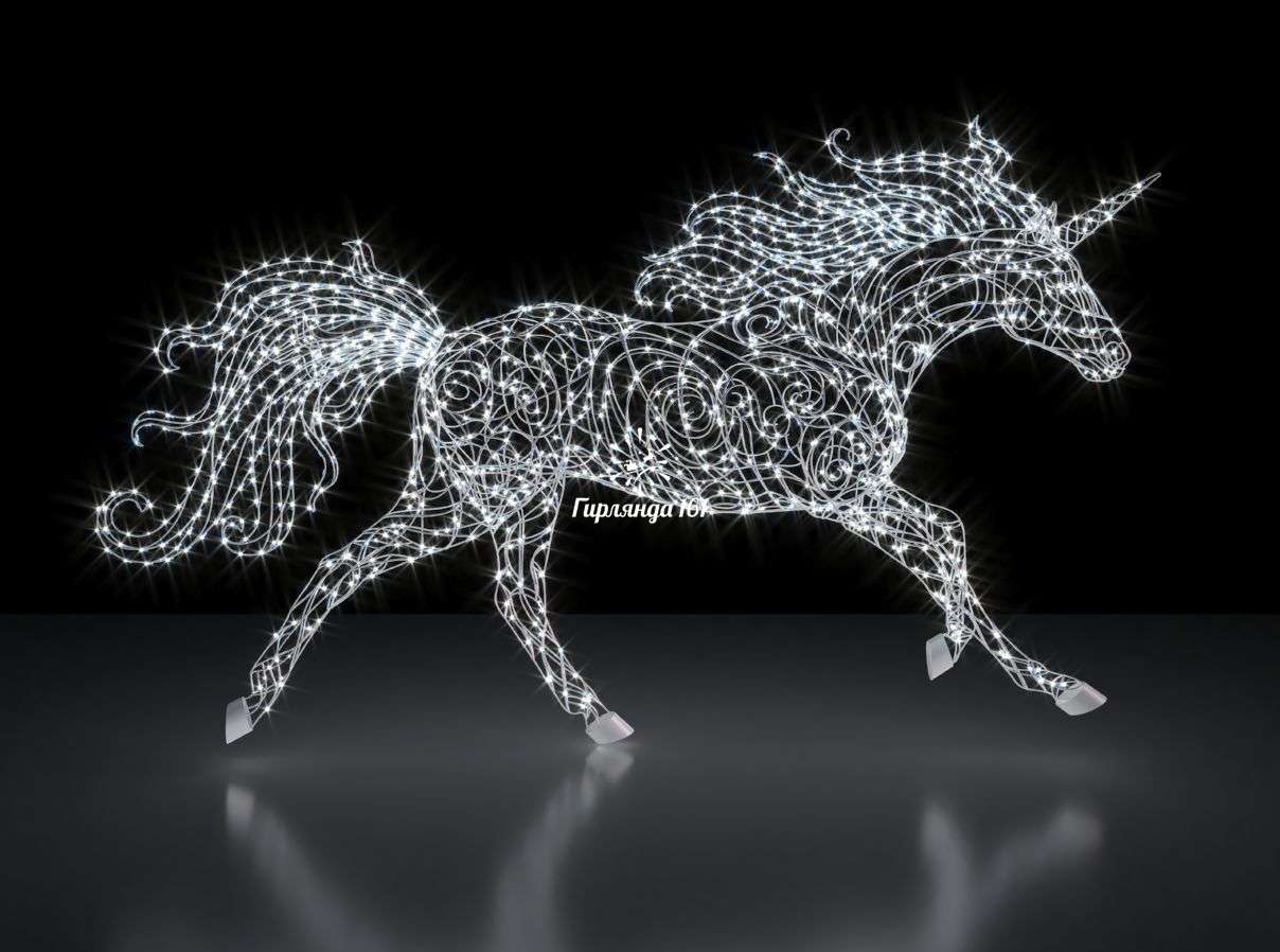 Сказочный декоративный элемент — очаровательная световая фигура в виде величественного единорога, которая станет неповторимым украшением праздничного пространства и подарит всем окружающим ощущение настоящей сказки.