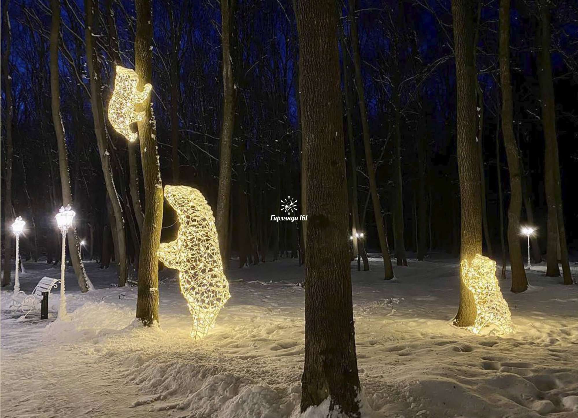 Позвольте световой композиции «Мишки в лесу» превратить обычное пространство в настоящую зимнюю сказку! Очаровательные фигуры медведей среди заснеженного леса создадут неповторимую атмосферу уюта и подарят радость всем окружающим.