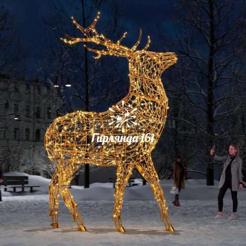 Грандиозная декоративная фигура — объемная световая композиция в виде величественного оленя, которая станет центральным элементом праздничного оформления и привлечет восхищенные взгляды всех гостей.