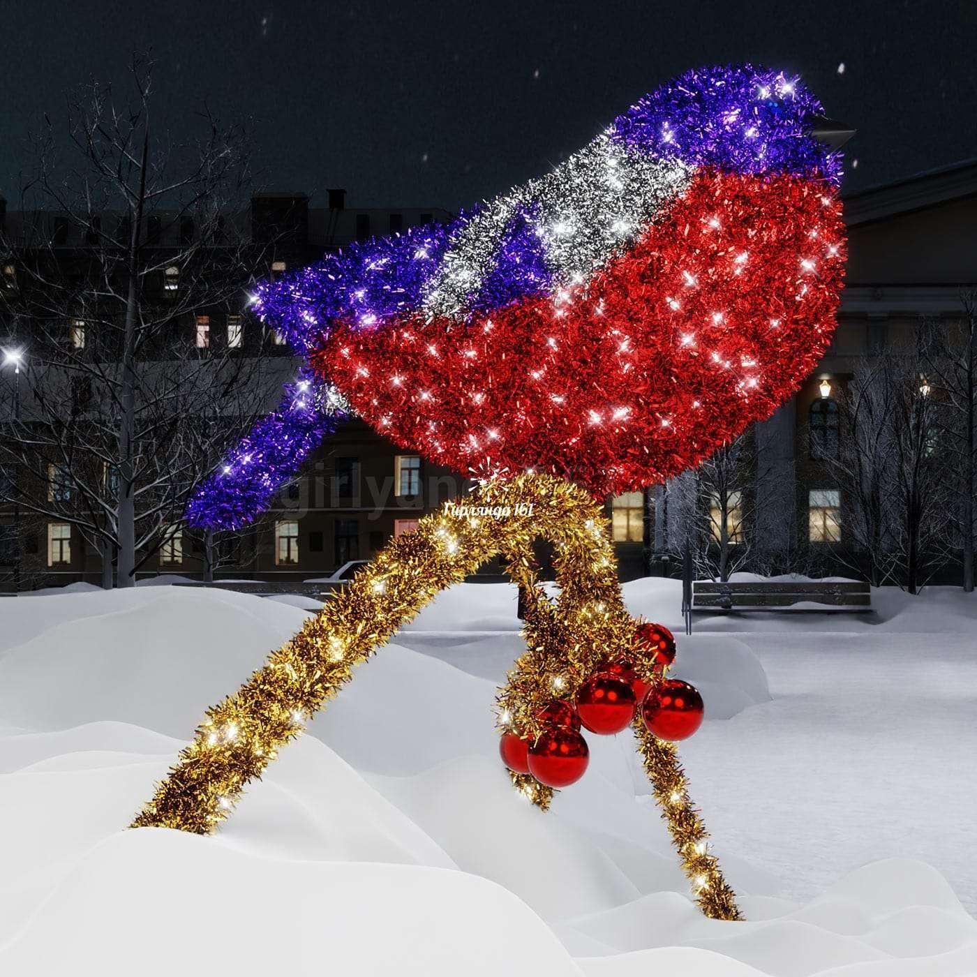 Световая фигура "Снегирь на ветке"