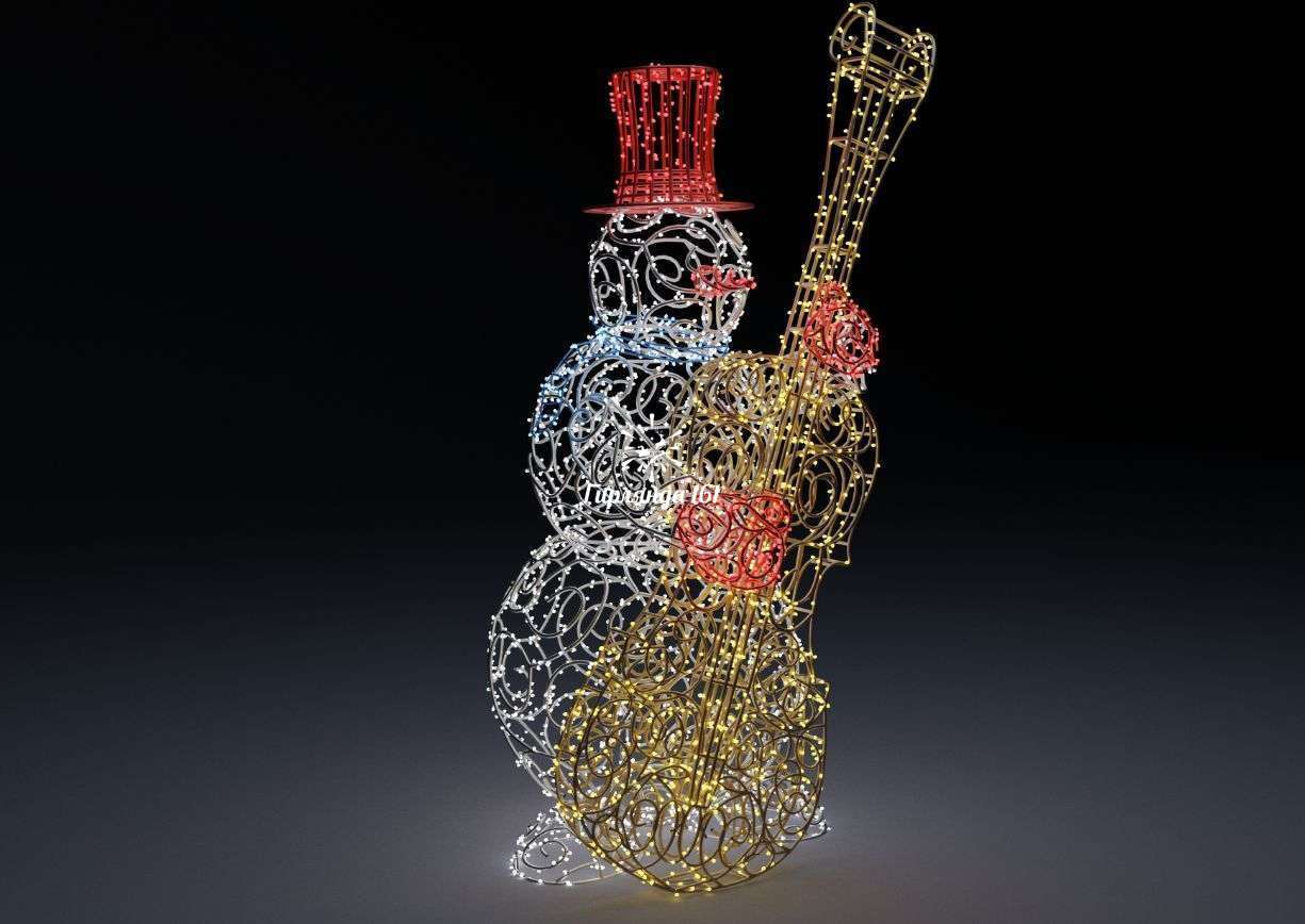 Уникальный декоративный элемент — очаровательная световая фигура в виде талантливого снеговика-контрабасиста, которая станет главным украшением праздничного пространства и подарит всем окружающим праздничное настроение.