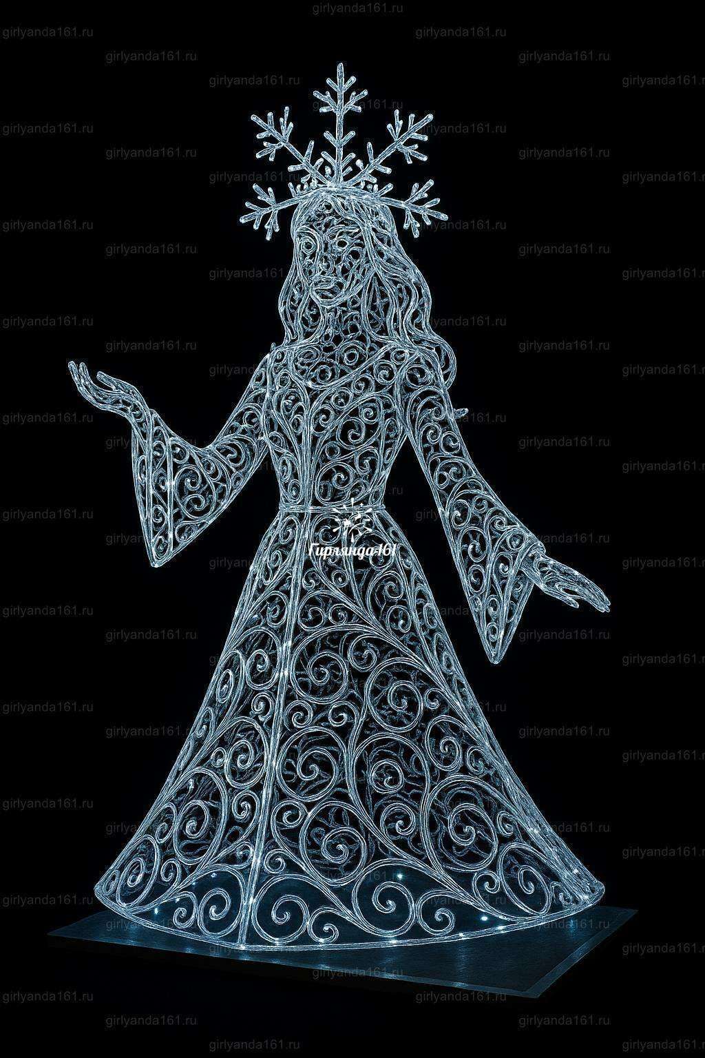 Изысканный декоративный элемент — воздушная световая фигура в образе Снегурочки с ажурным оформлением, которая станет неповторимым украшением праздничного пространства и подарит всем окружающим ощущение волшебной сказки.