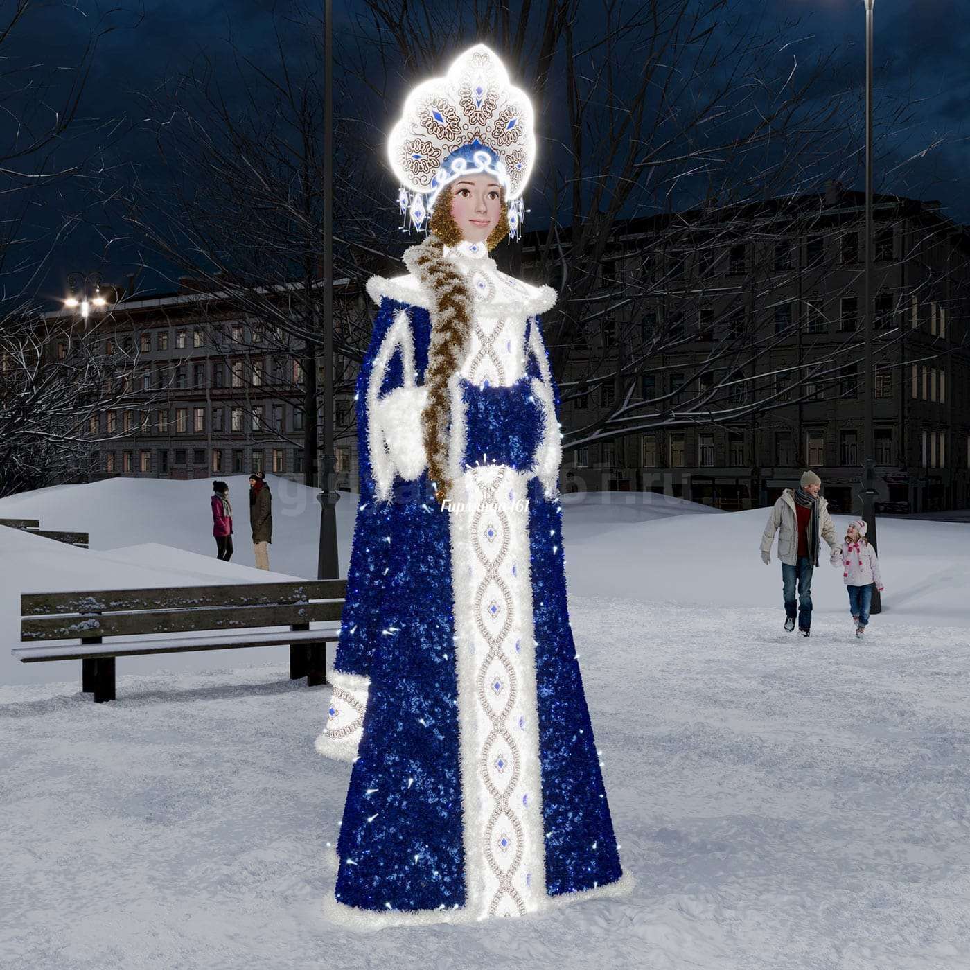 Световая фигура «Снегурочка в синей шубе» 3,38 м — величественное новогоднее украшение