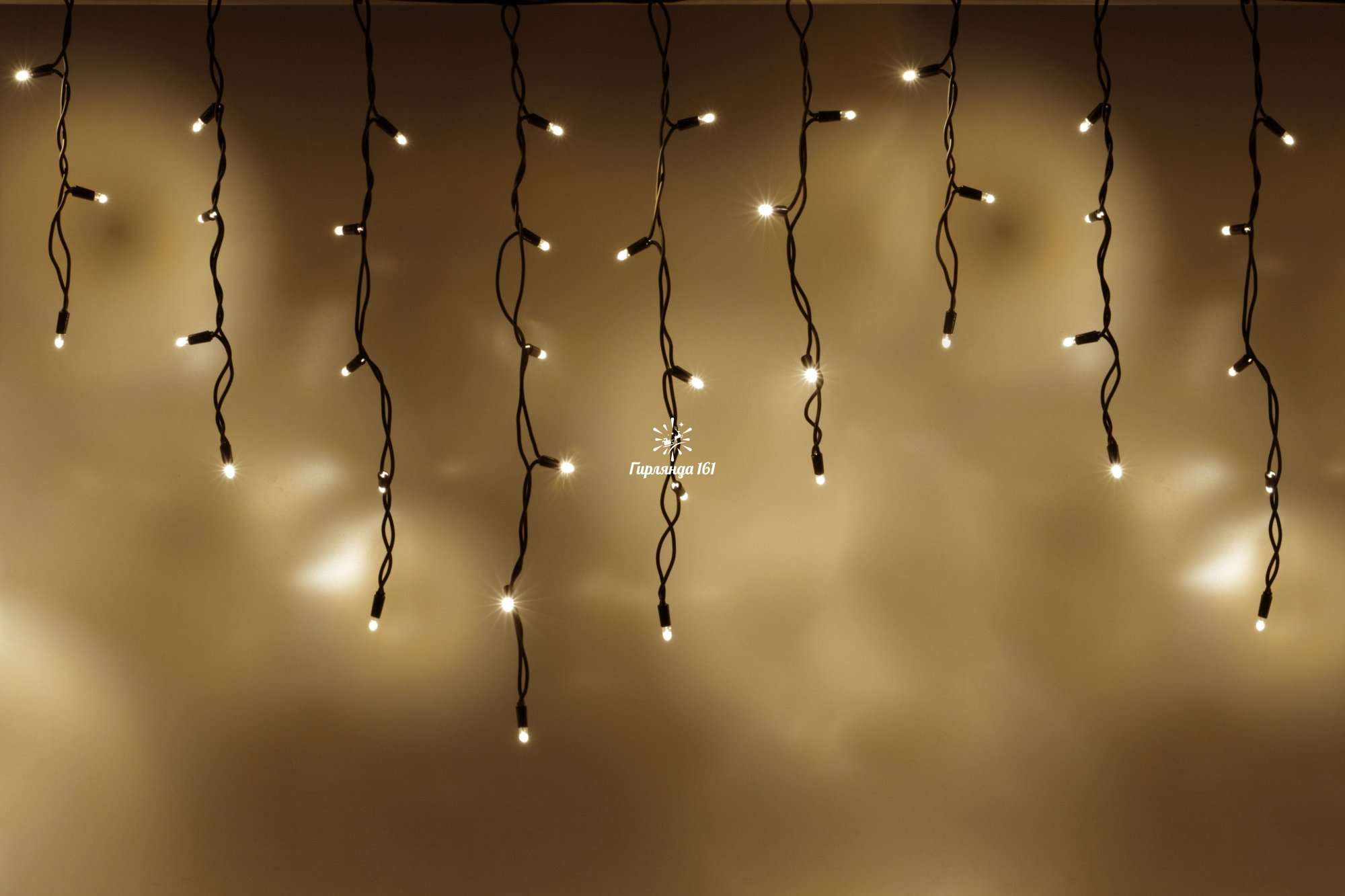 Изысканное осветительное изделие — светодиодная бахрома на чёрном резиновом проводе с равномерным свечением, которая станет стильным акцентом в любом праздничном оформлении.