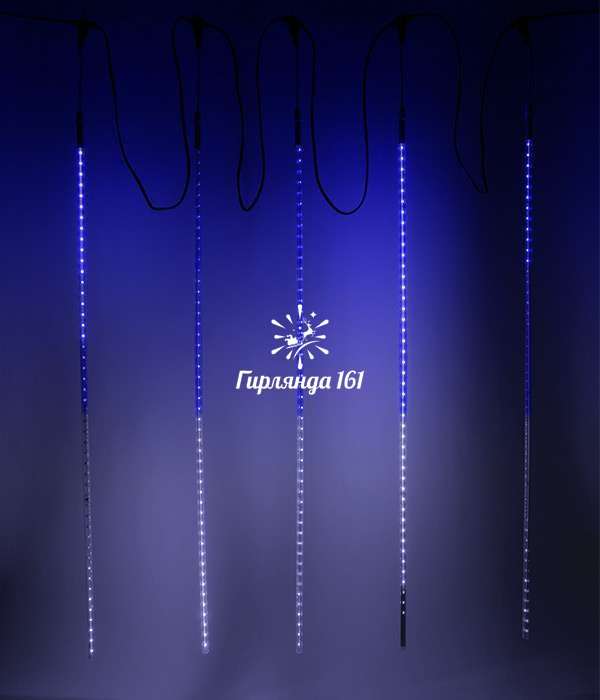 Гирлянда «Тающие сосульки» бело-синего цвета — профессиональное решение для создания впечатляющего светового оформления. Сочетание белого и синего света создаёт неповторимый праздничный эффект, который привлечёт внимание и создаст волшебную атмосферу.