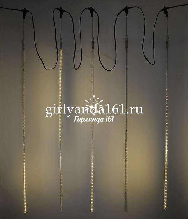 Светодиодная гирлянда «Тающие сосульки» 5×1 м тепло-белого цвета — эффектное новогоднее украшение для дома и улицы с реалистичным эффектом стекания воды.