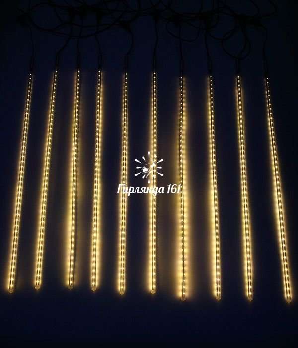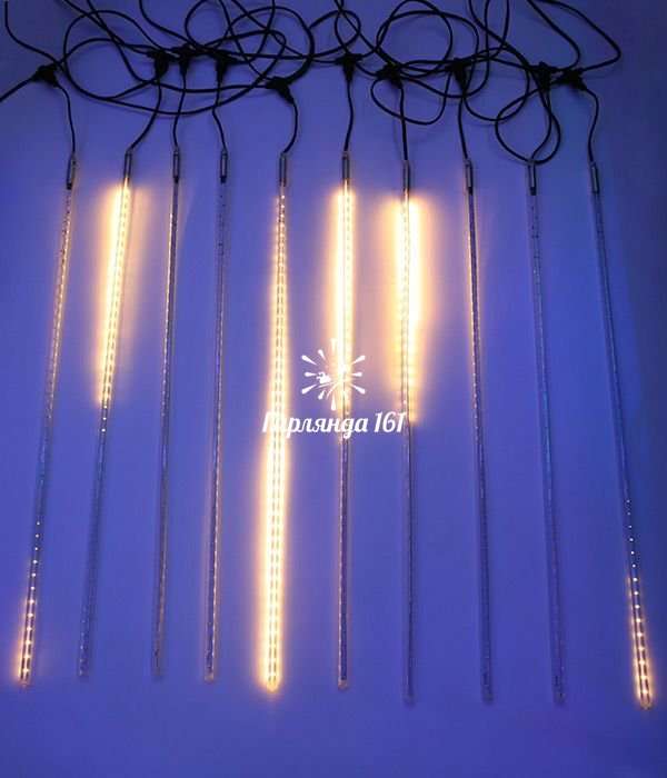 Светодиодные тающие сосульки 10×0.8м теплого белого цвета — уютное световое решение для праздничного оформления помещений и фасадов. Создаёт мягкий, приятный свет, имитирующий эффект стекающих капель.