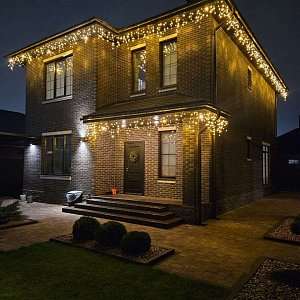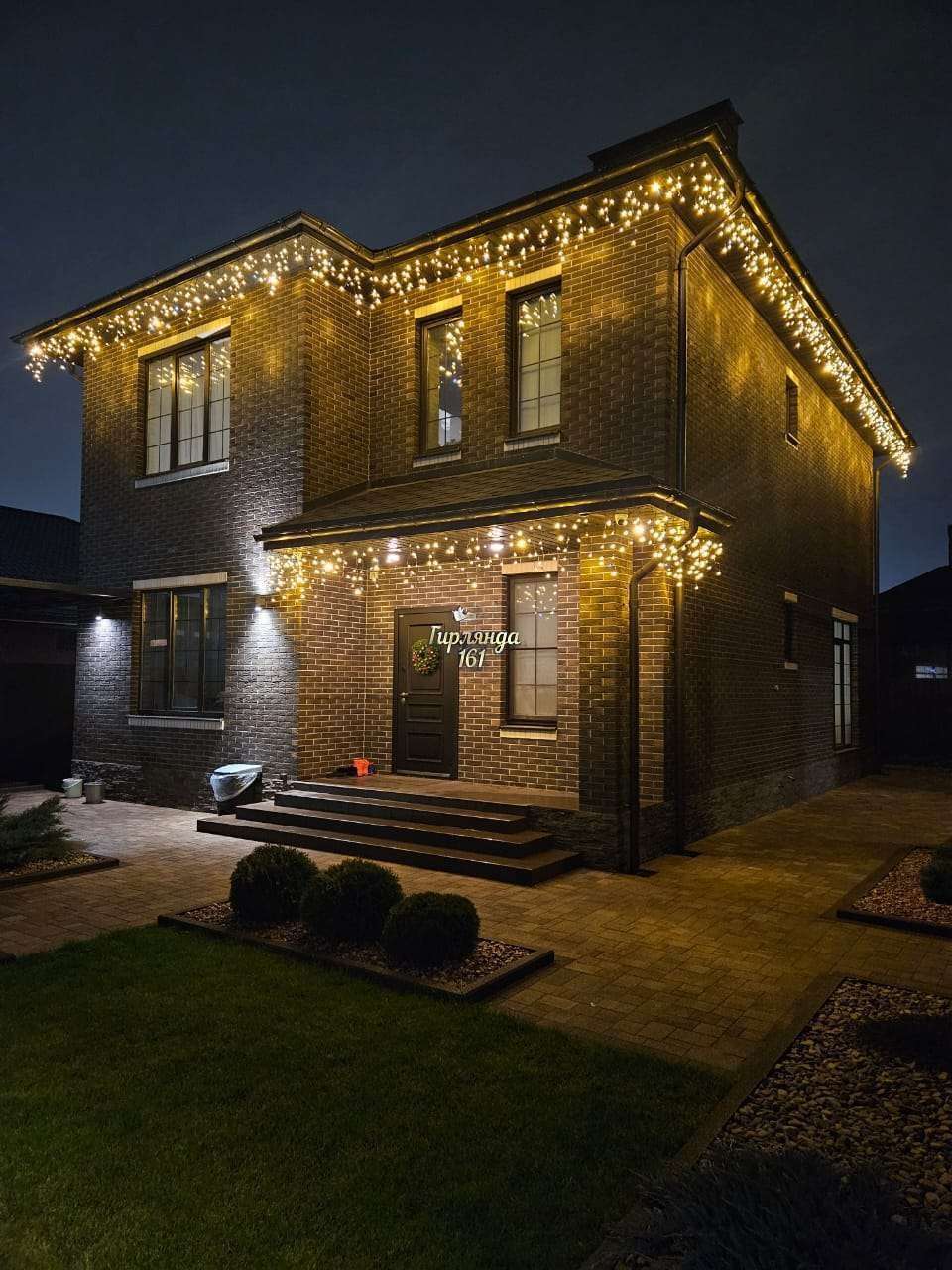 В проекте использовано сочетание декоративной подсветки бахромой по контуру .