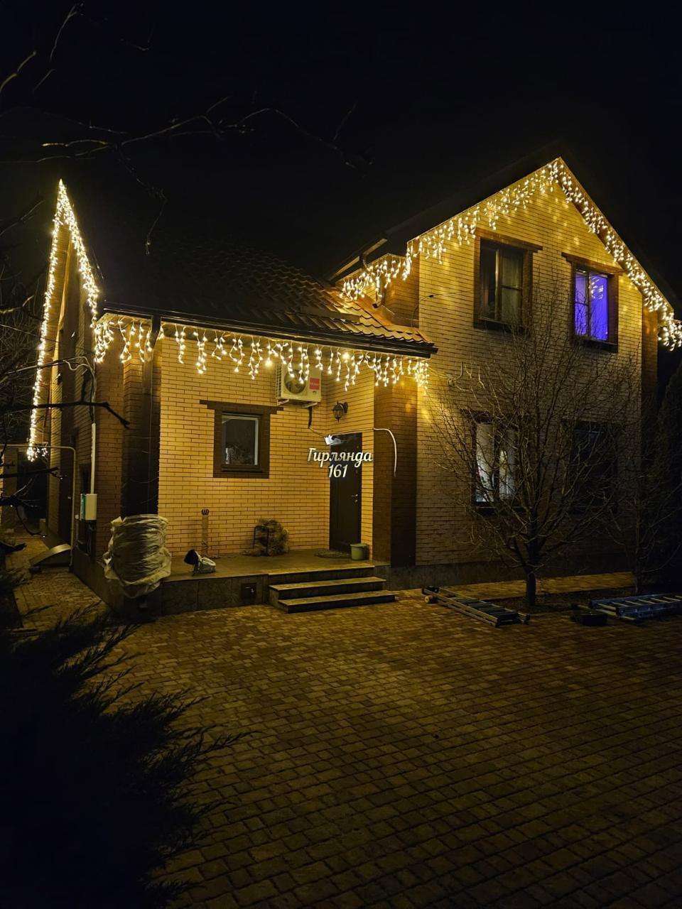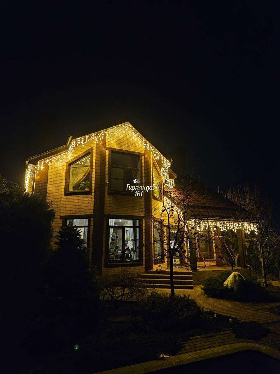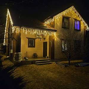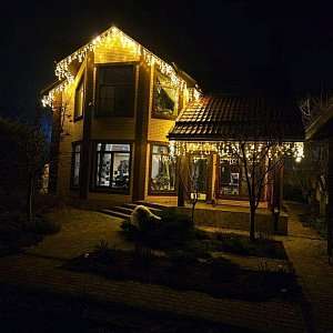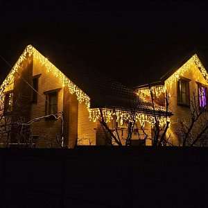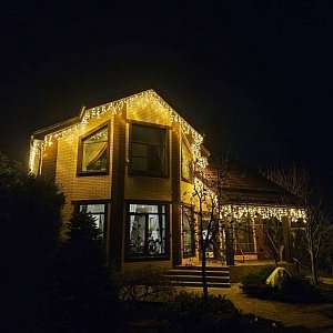 В проекте использовано сочетание декоративной подсветки бахромой по контуру .